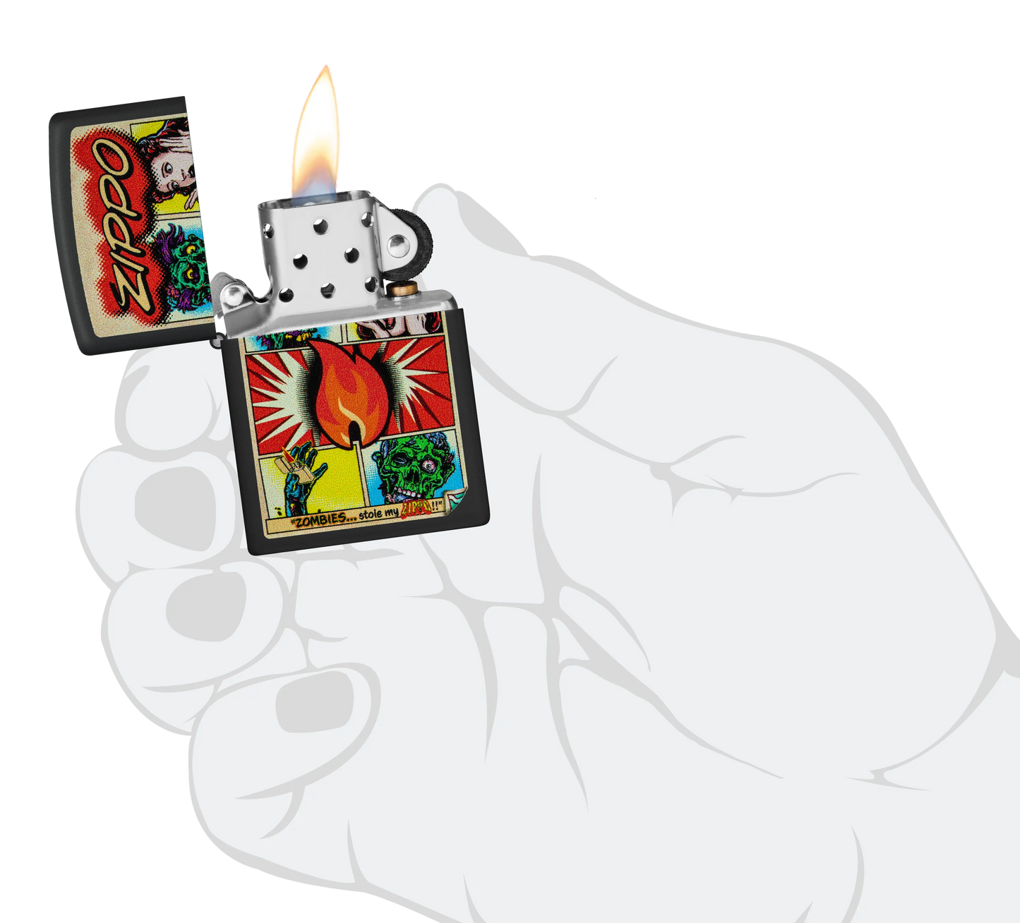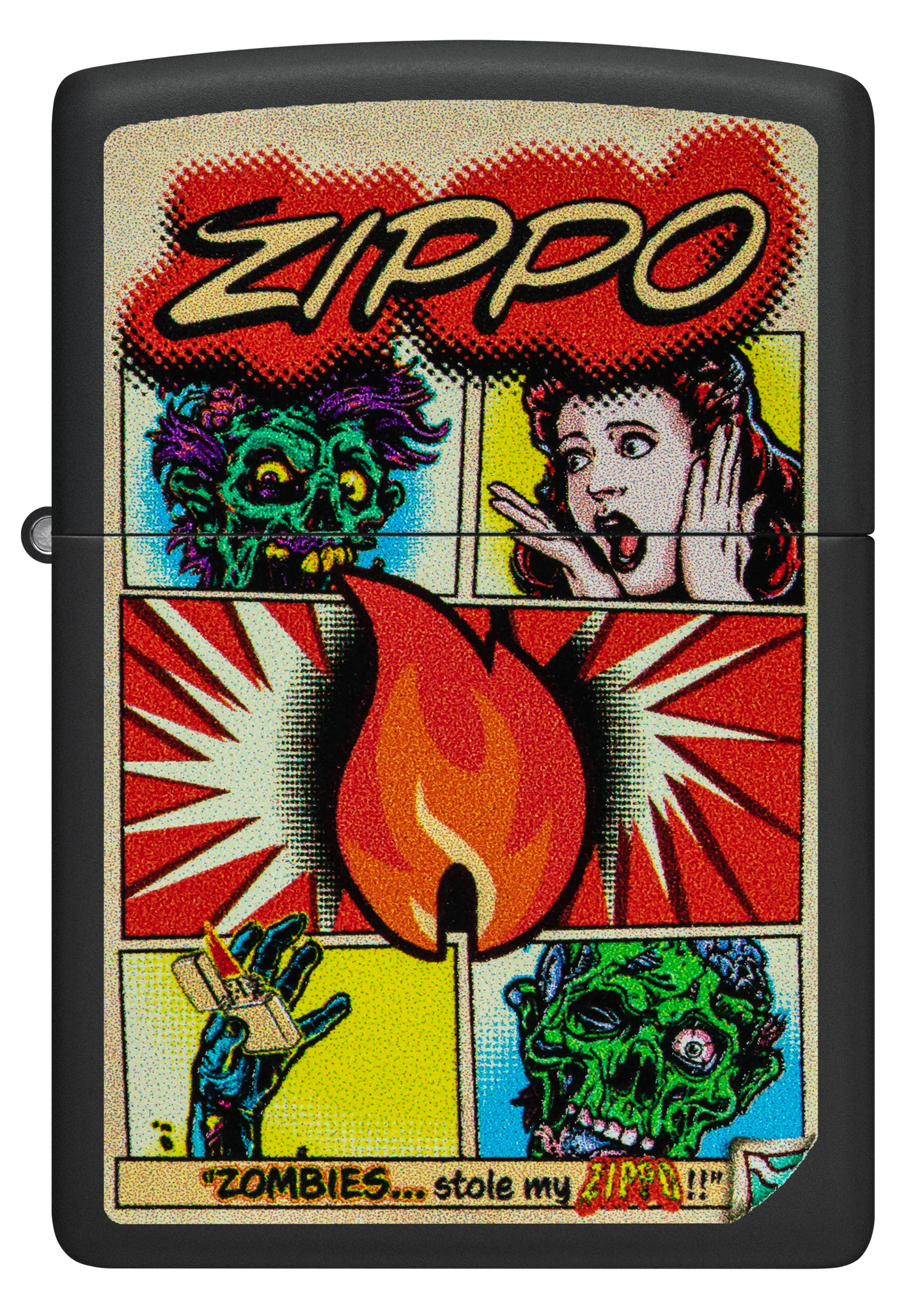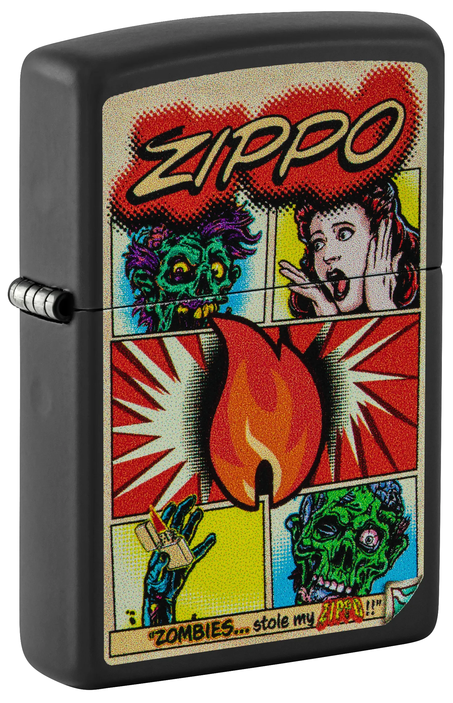 Ne laissez pas les zombies vous voler ce briquet Black Matte classique. Évoquant un roman graphique vintage, ce briquet redonne vie au genre dans un motif Color Image audacieux.