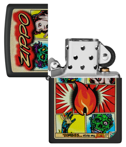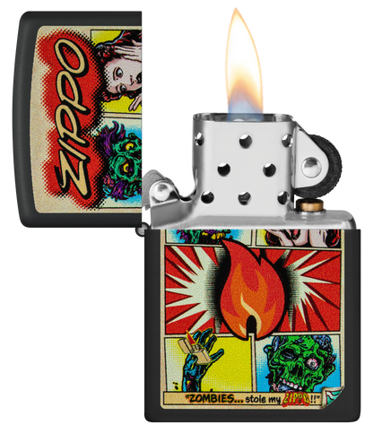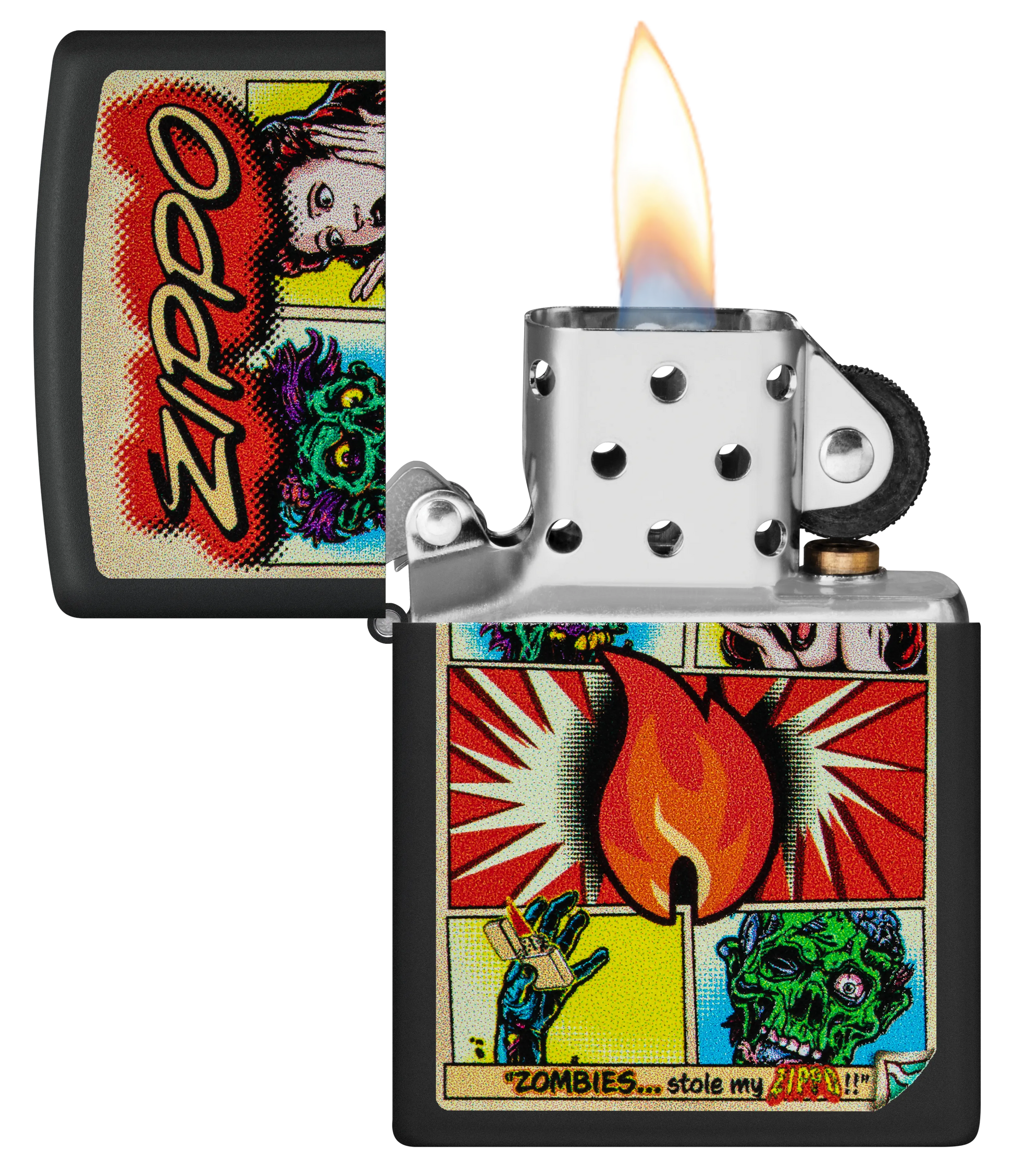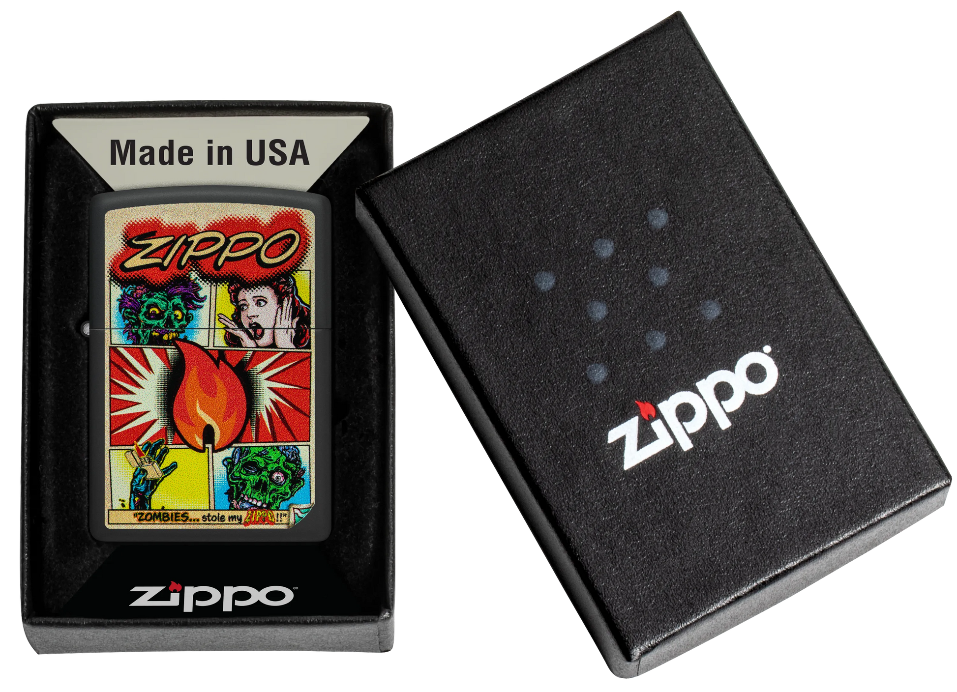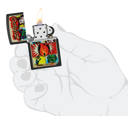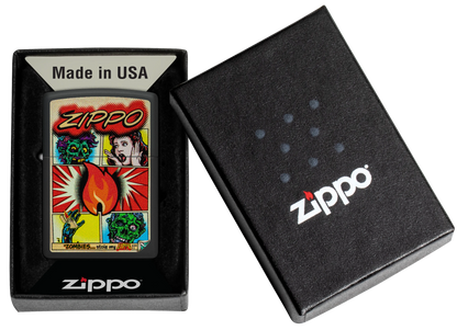 Ne laissez pas les zombies vous voler ce briquet Black Matte classique. Évoquant un roman graphique vintage, ce briquet redonne vie au genre dans un motif Color Image audacieux.