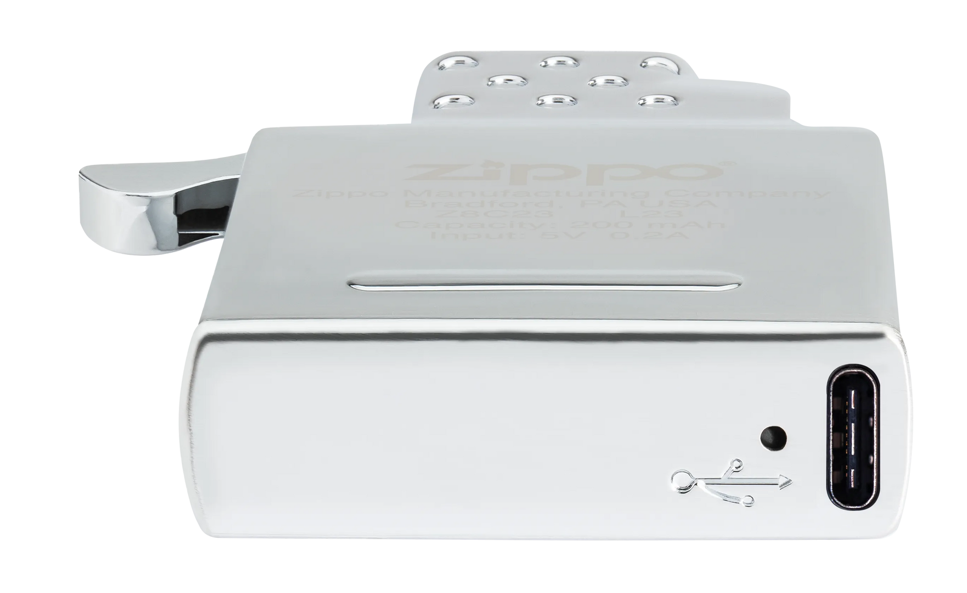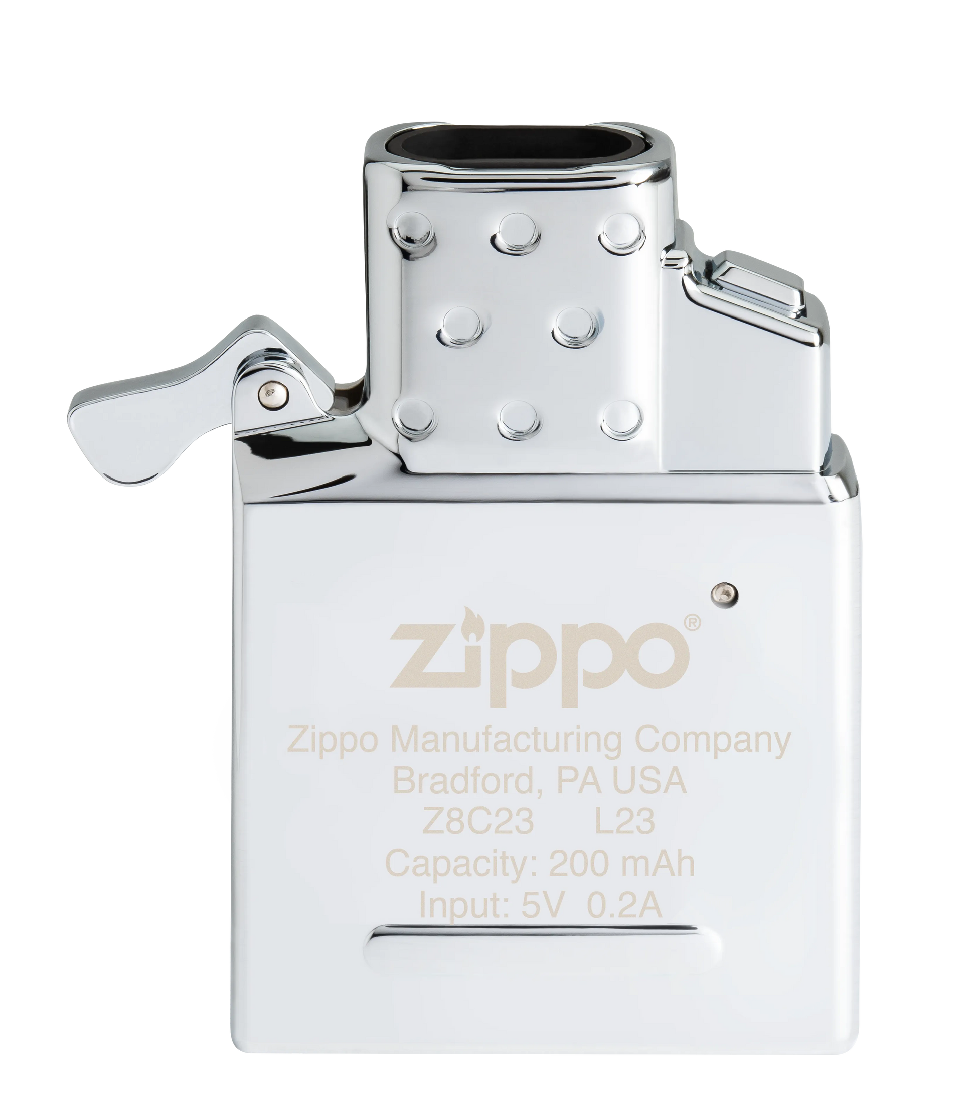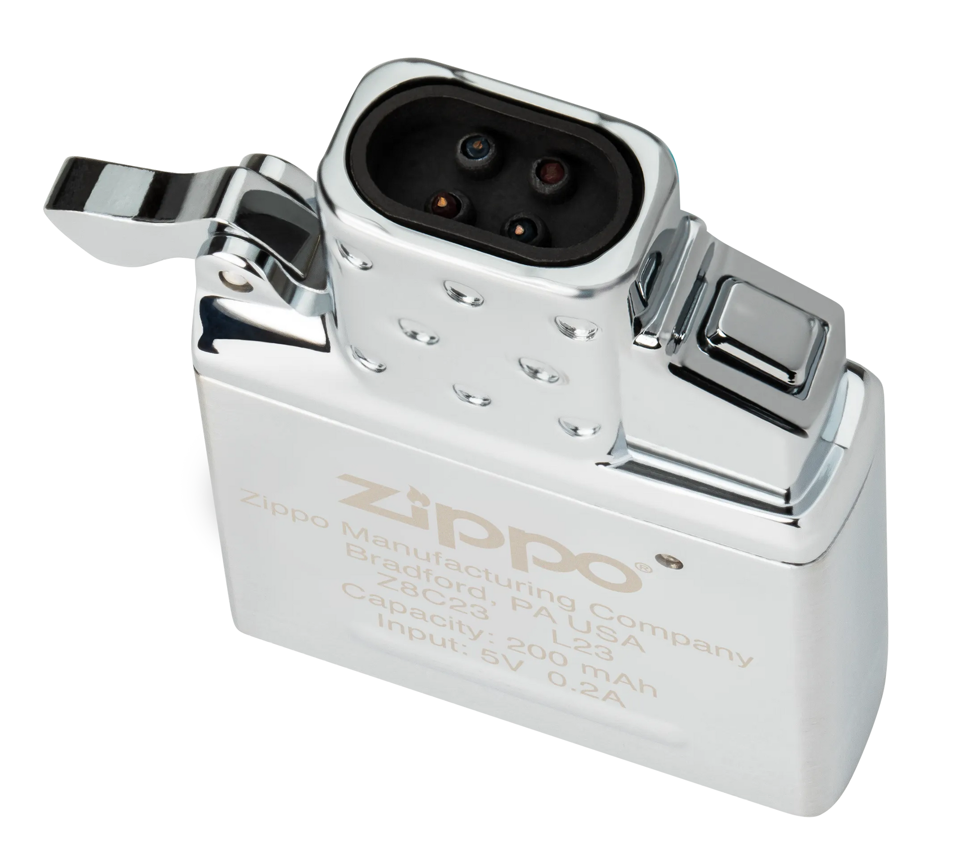 Allez plus loin dans la personnalisation en choisissant votre type de flamme. L'insert de briquet rechargeable Double Arc inclut deux puissants faisceaux de plasma qui s'allument d'une simple pression sur un bouton, offrant ainsi une source de chaleur sans flamme et à l'épreuve du vent pouvant être facilement rechargée avec le câble USB-C inclus. Tous les inserts de briquet Zippo sont conçus pour s'adapter parfaitement à n'importe quel étui à briquet Zippo classique* (vendu séparément).
