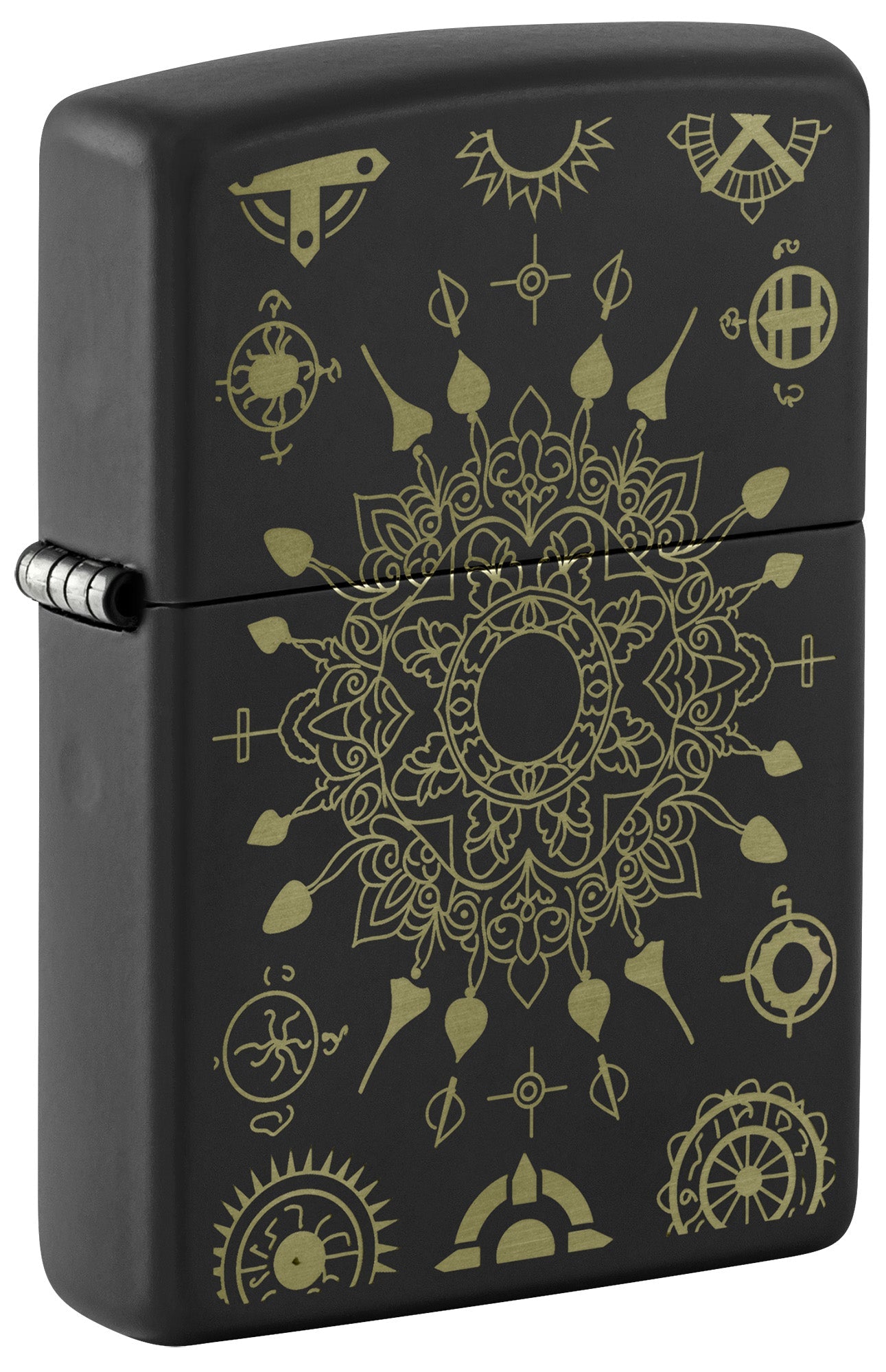 Apportez une touche de calme et de sérénité à votre collection avec ce briquet classique noir mat. Un motif de mandala complexe et fascinant, appliqué par gravure laser, révèle de riches tons laiton sous la finition du briquet.