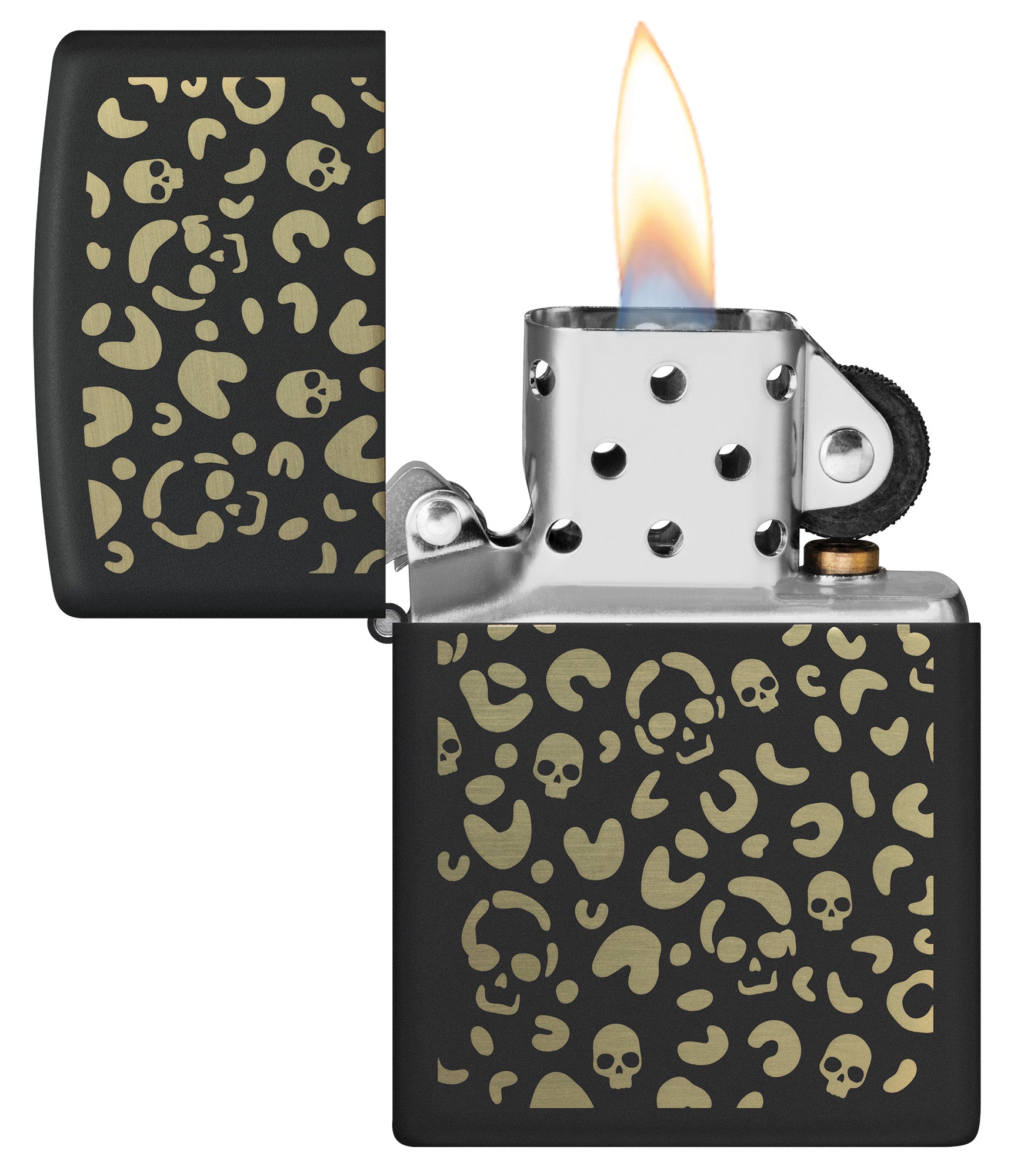 Ce briquet noir mat apporte une dimension sinistre à l’un des plus beaux motifs que la nature nous offre à contempler. Gravé au laser, ce motif léopard apparemment classique révèle des crânes cachés lorsqu’on l’examine de plus près.