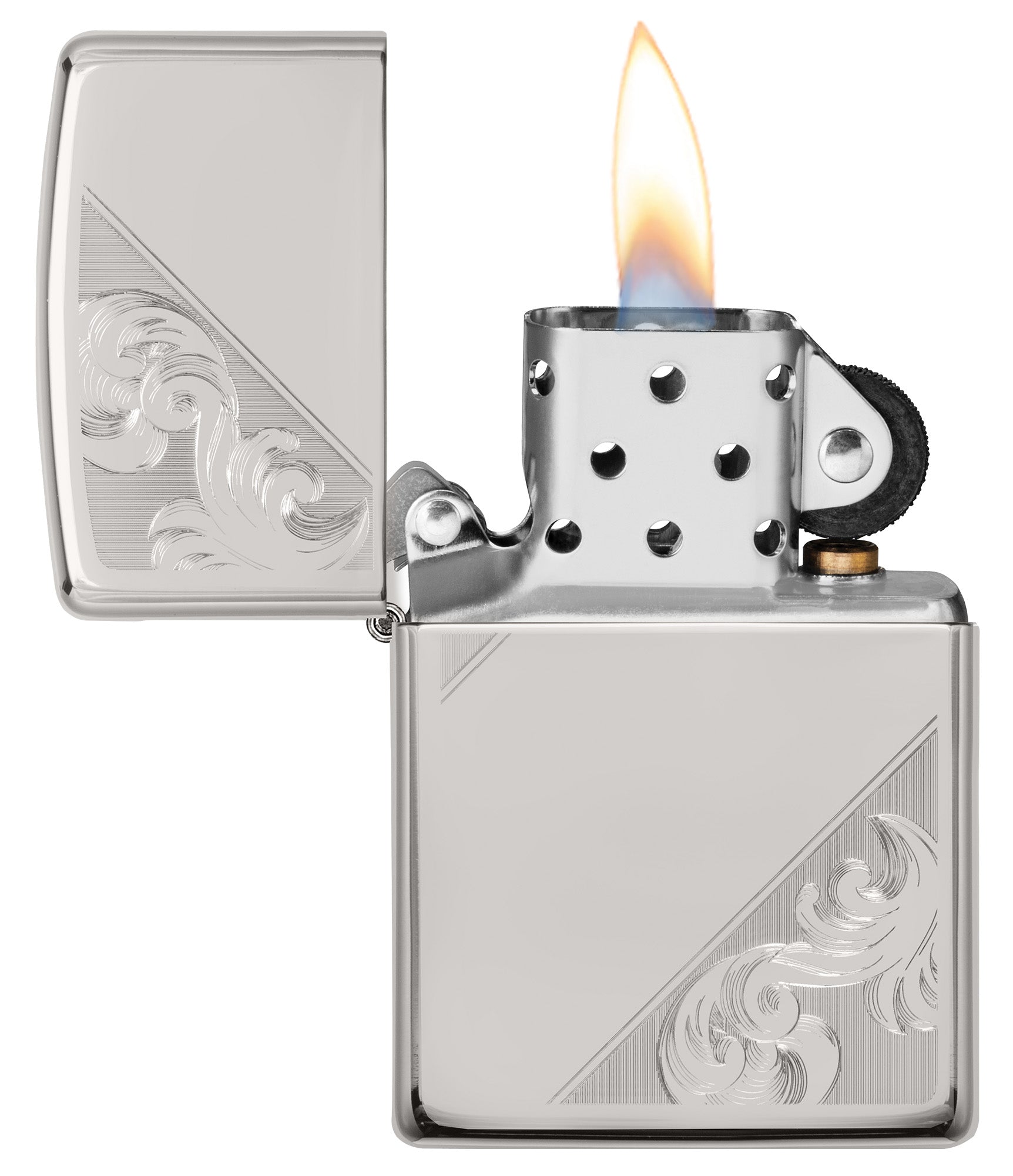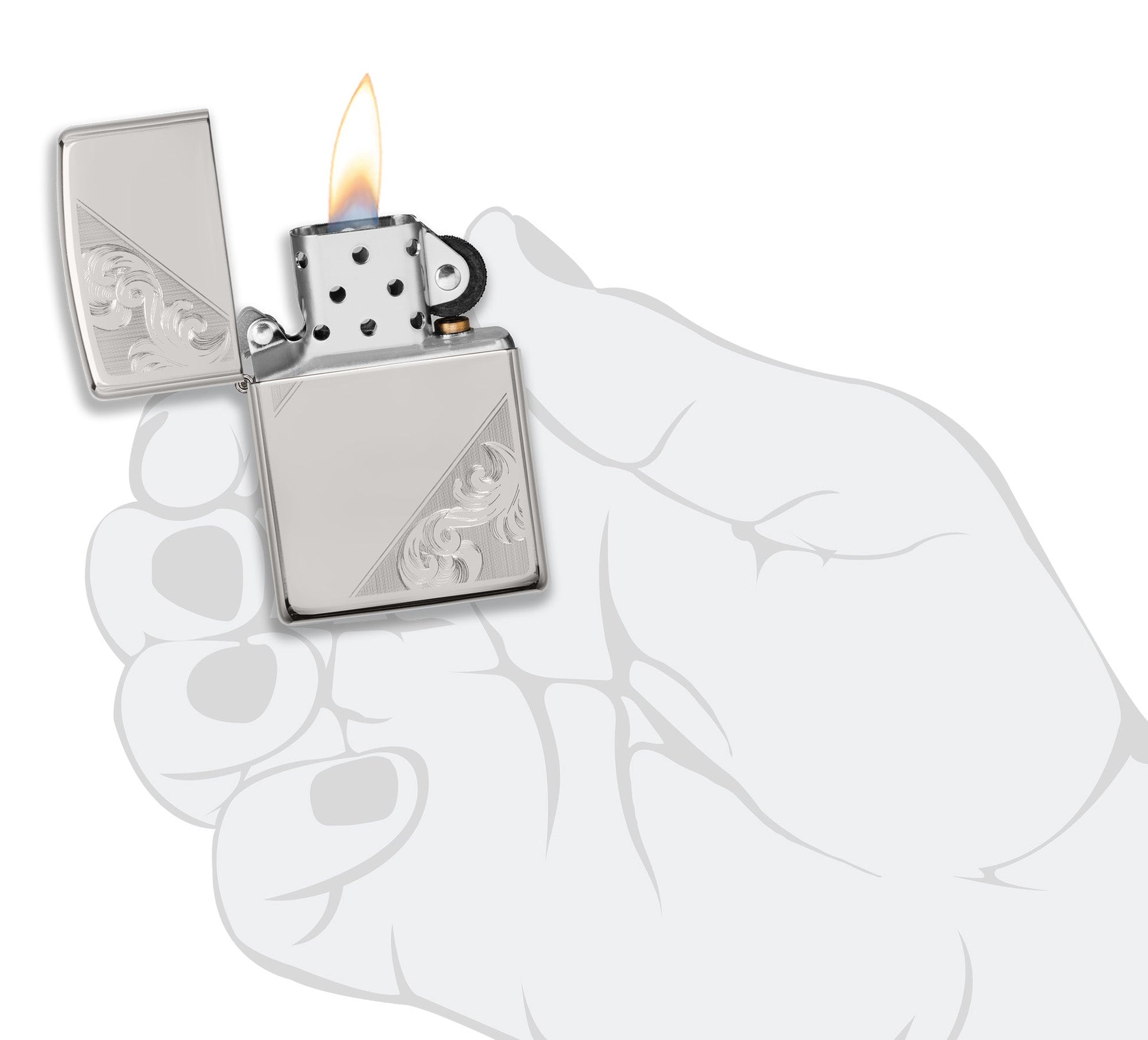 Les volutes et les fioritures complexes de ce motif filigrané en diagonale sont réalisées à l'aide de la technique classique de gravure automatique de Zippo, qui apporte des reflets et de la profondeur à ce briquet en argent sterling à finition polie brillante. Les effets nets et précis sont obtenus grâce à des traits de remplissage dimensionnels qui rehaussent l'élégance du motif. Livré dans un coffret cadeau. Pour une performance optimale, remplissez-le avec du combustible pour briquet Zippo.